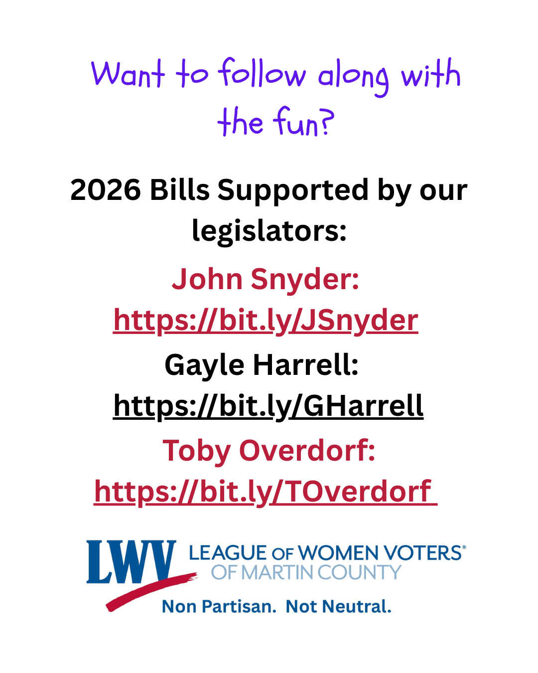 Visit these links to see what our legislators are supporting. Then reach out to them with what you think!